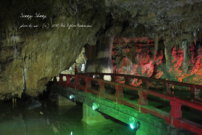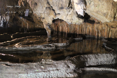 鍾乳石を伝い、雫がぽたぽたと落ち、波紋が広がって神秘的でした。