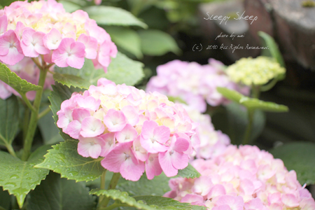 我が家のアジサイはうっすらピンクです。