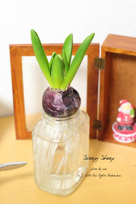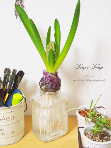 ヒヤシンスの芽が伸びてきました。