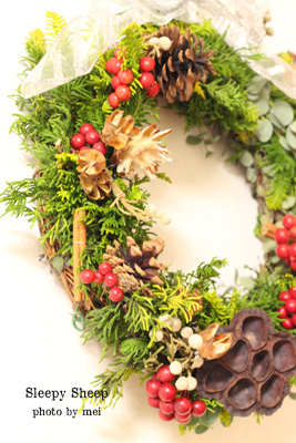 その勢いで、クリスマスリース作りにもチャレンジ。