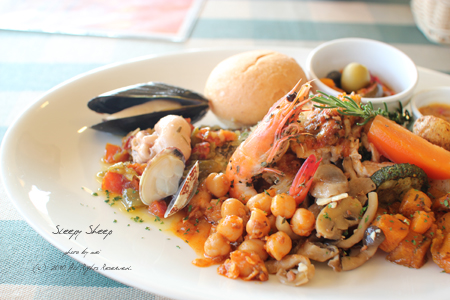 ここはランチしかなく、メニューも一種類なのですが、とてもおしゃれでおいしくボリュームもたっぷり。 これにサフラン?かな、黄色いご飯もついてました。ラタトゥイユとってもおいしかった。