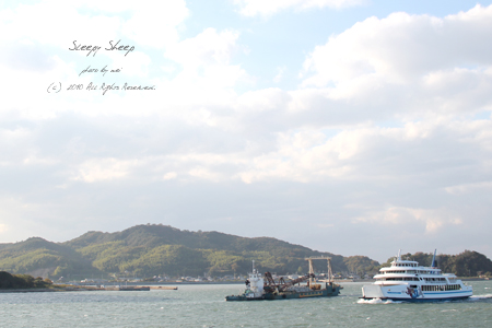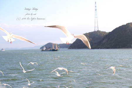 行きはやっぱり間違っていたのかってぐらい、今回は満員で、ちびっこがみんなかっぱえびせんもっていると思ったら、フェリーから海鳥にあげるらしい。